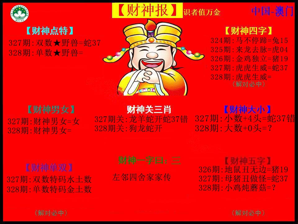 326-328期 一肖〖狗狗狗 326期下注五千 开:蛇37准